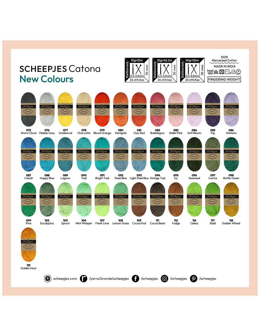 Pelote 100% coton Scheepjes Catona, 50g. Pour crochet et aiguilles 2,5 à 3,5 mm.