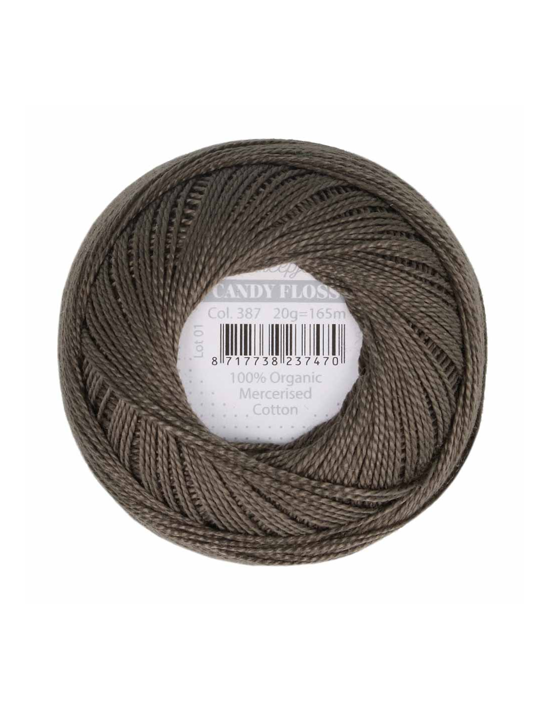 55Pelote de coton mercerisé fin 20 g, coloris olive noire 387