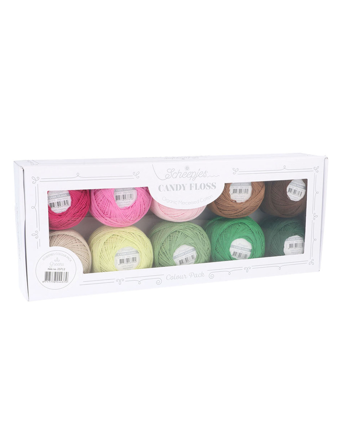 Assortiment de 10 pelote de coton mercerisé fin 20 g, coloris "greens"