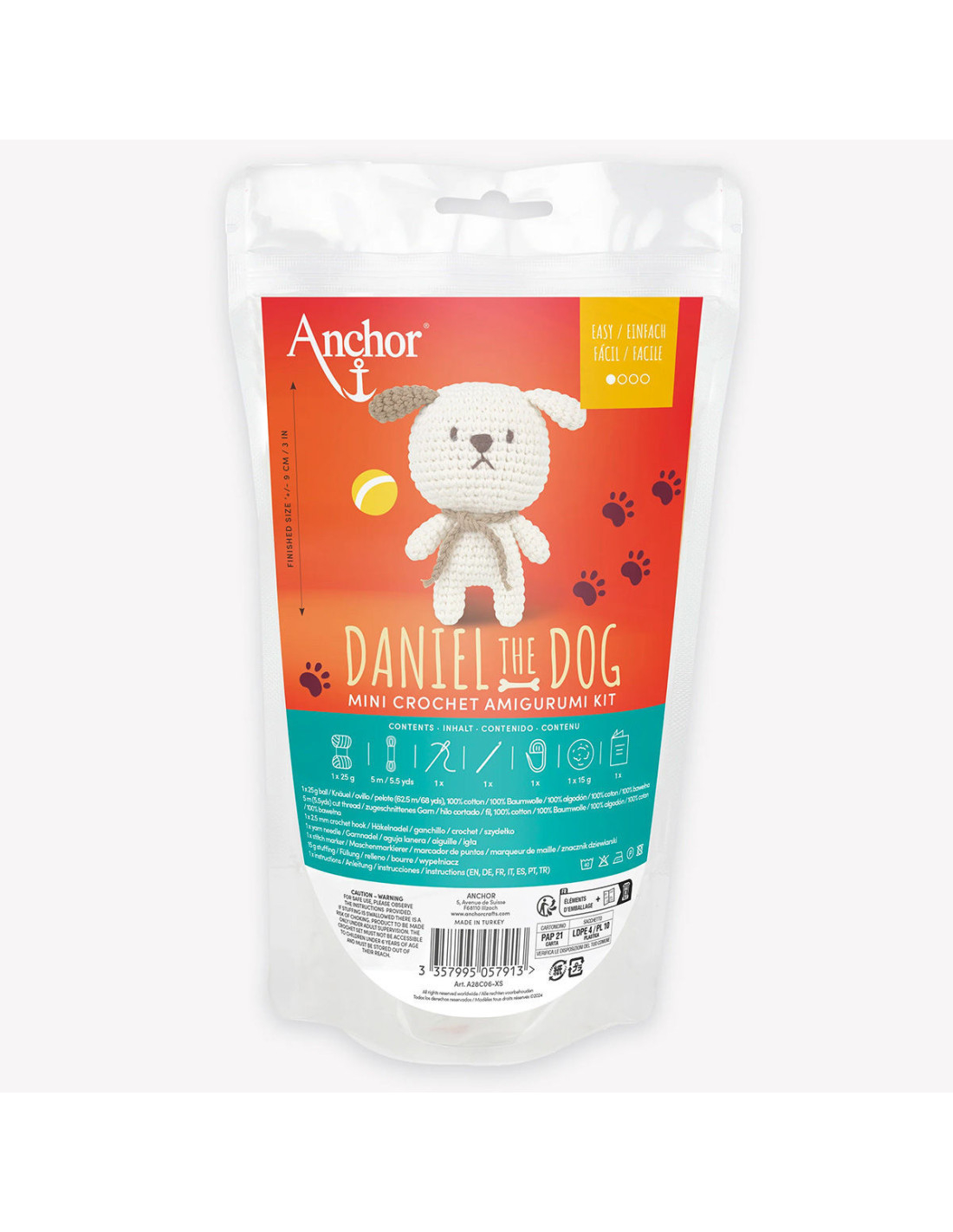 Kit amigurumi débutant au crochet Anchor : Daniel le chien