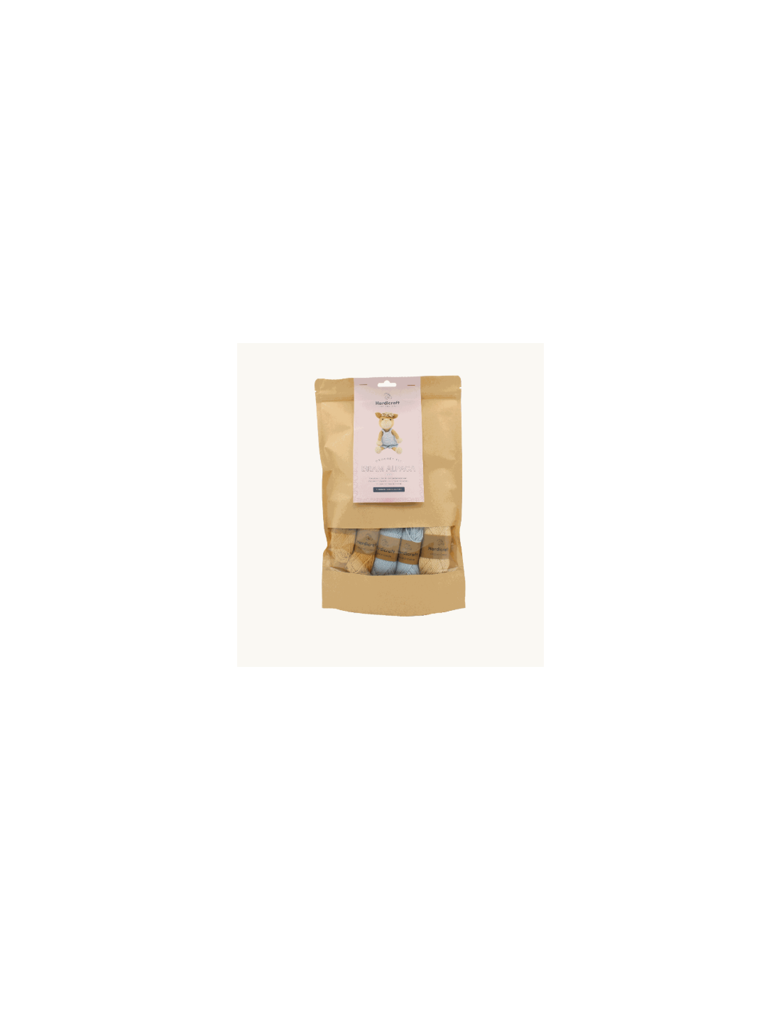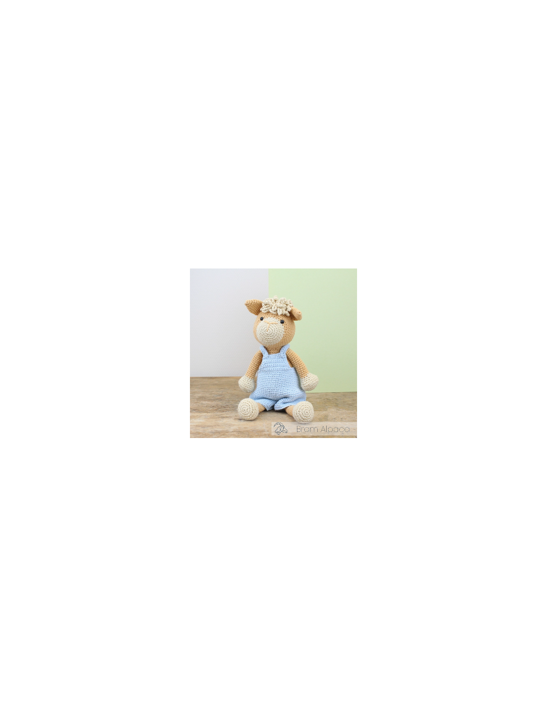 Avec ce joli kit vous pourrez réaliser un adorable alpaga paré de sa jolie salopette et prénommé Bram.