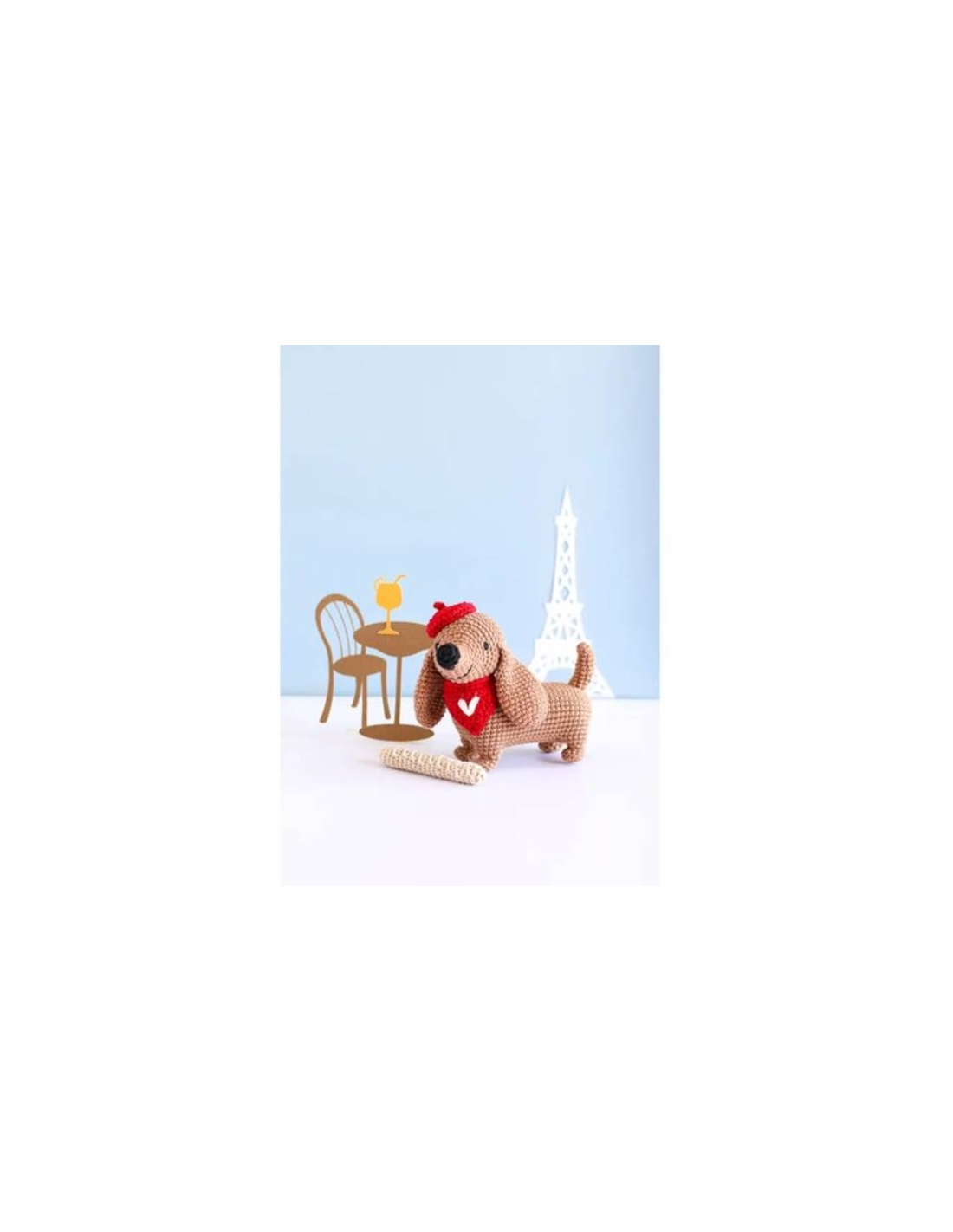 Kit complet pour crocheter un adorable teckel et ses petits accessoires