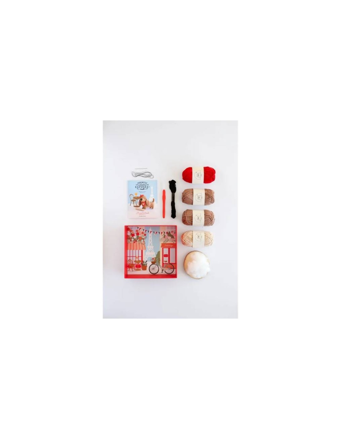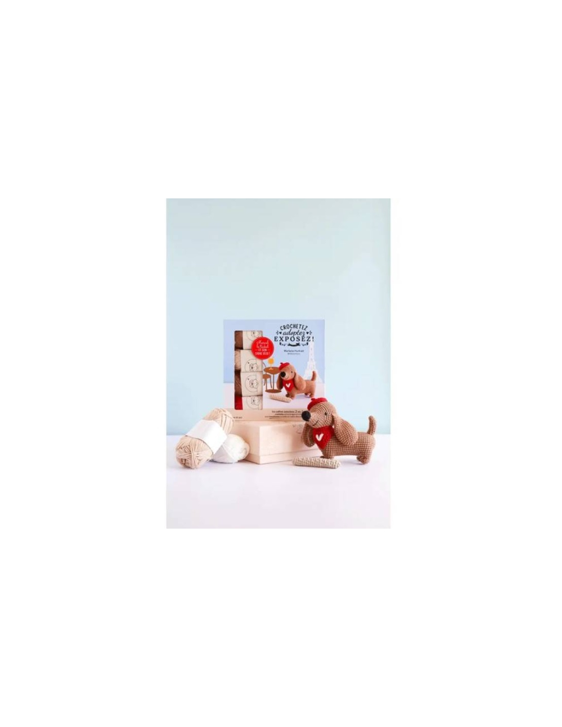 Kit amigurumi "crochetez, adoptez, exposez" des éditions de Saxe avec Little Bichon : Marcel le teckel