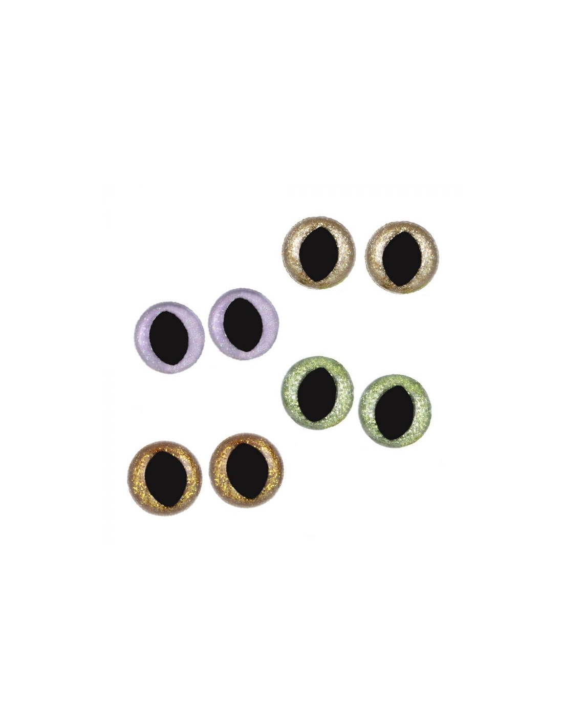 Deux yeux pailletés (1 paire) à la pupille de chat (serpent, dragon ou autre créature fantastique) pour poupée, amigurumi et peluche : les yeux sont transparents et fournis avec une rondelle pailletée pour donner la couleur.
